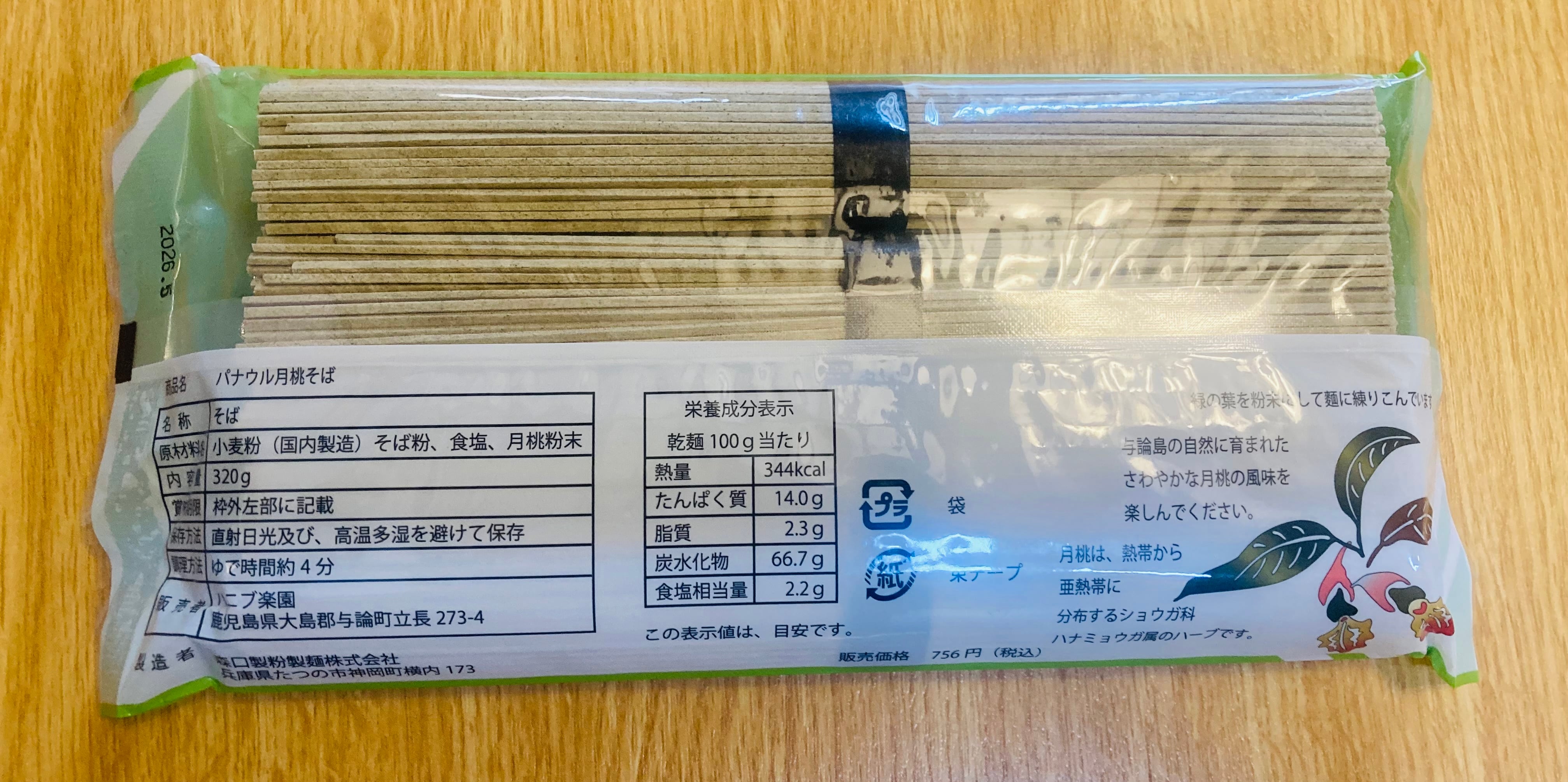 ・小麦粉(国内製造)、そば粉、食塩、月桃粉末(与論島産)