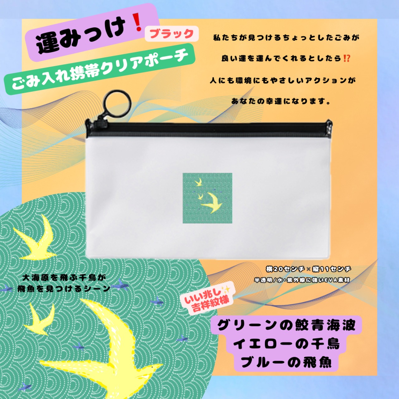 この【運みっけ!ごみ入れ携帯クリアポーチ(ブラック)】で、環境への配慮もカジュアルに実践。あなたのライフスタイルにプラスして、外出時のストレスもなくしちゃいましょう。